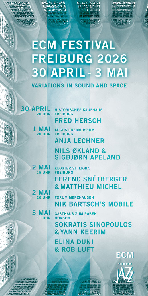 Nach 2016 und 2024 präsentiert forum jazz e. V. (Merzhausen) seine dritte Festival-Kooperation mit dem legendären Münchener Label; und dies gleich in fünf herausragenden Spielstätten. Auf dem Laufenden bleiben ...... Bitte unseren Newsletter bestellen.